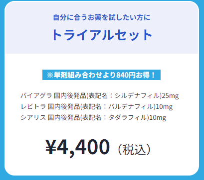 やっと一緒に気持ちよくなれたという幸福感と、未だに勃起し続けるペニスを見て改めてED薬ってすごいんだな…と思います。次の夜も、次の週末もバイアグラを飲んで、ちゃんと愛を確かめ合いました。僕のペニスに一番合っているのはシアリスでしたが、この辺は人によりますので、まずはトライアルの治療薬を3つ飲んでみたらいいかなと思います。